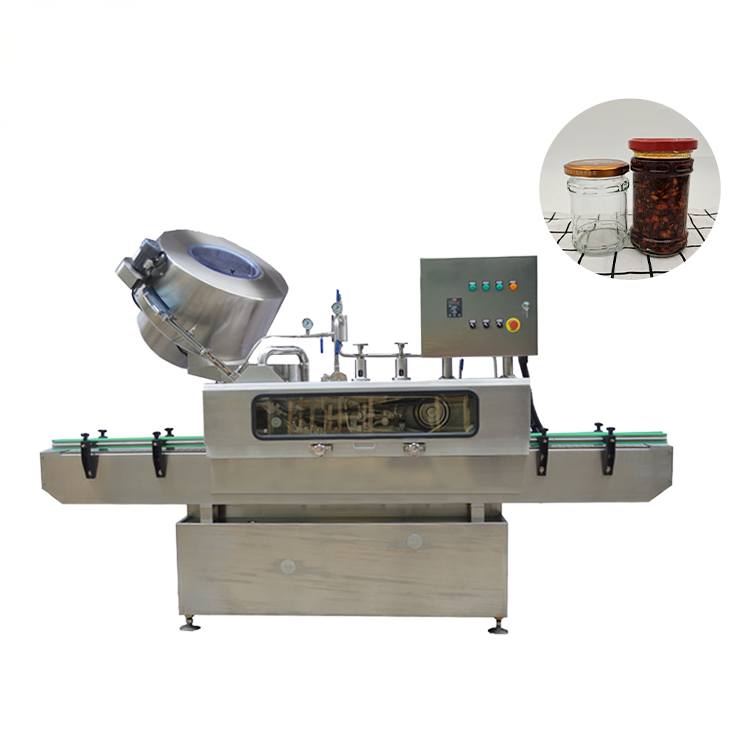 Extend food storage time glass bottle jar screw cap closer Steam vacuum capping machine is widely used in automatic vacuum caps for glass bottle iron caps in food and beverage, sauces, Bird’s nest , condiments, medicines, health care products and other industries.